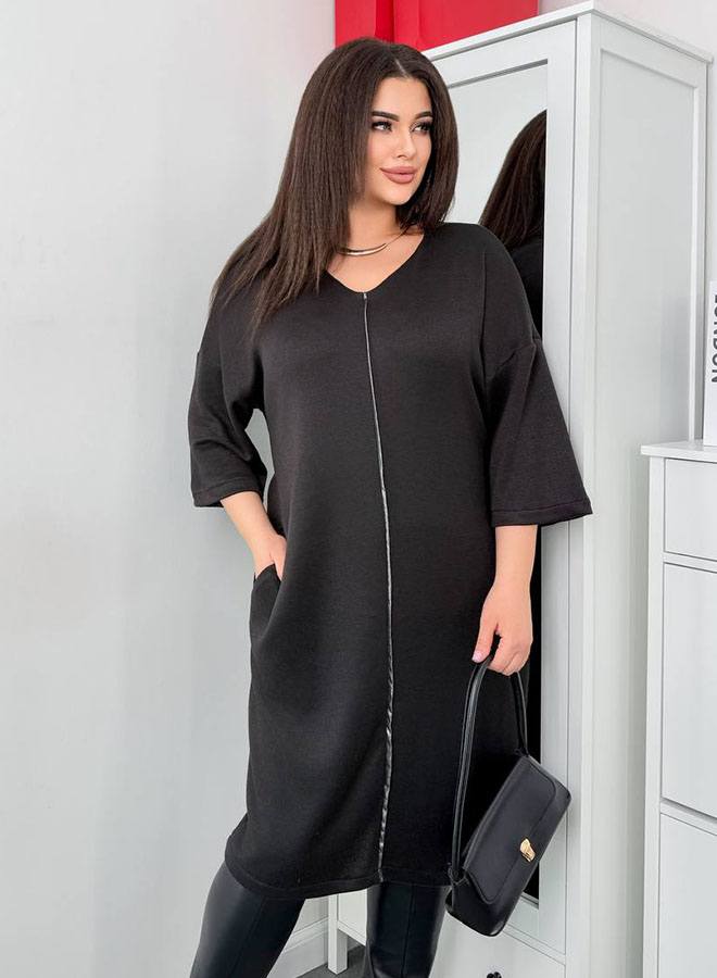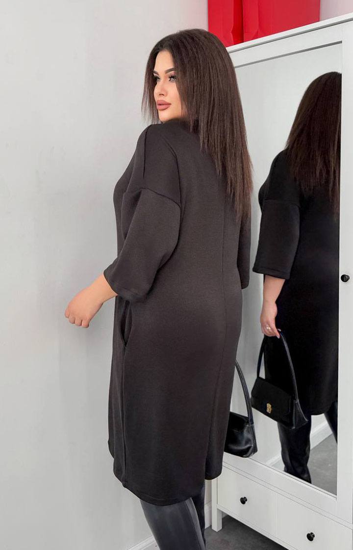 Елегантна, тепла та стильна, жіночна сукня з полірованої ангори. Сукня вільного крою, але силует зберігає, рукава три чверті. Зручна довжина, дві кишені.