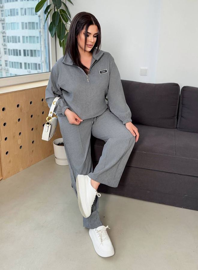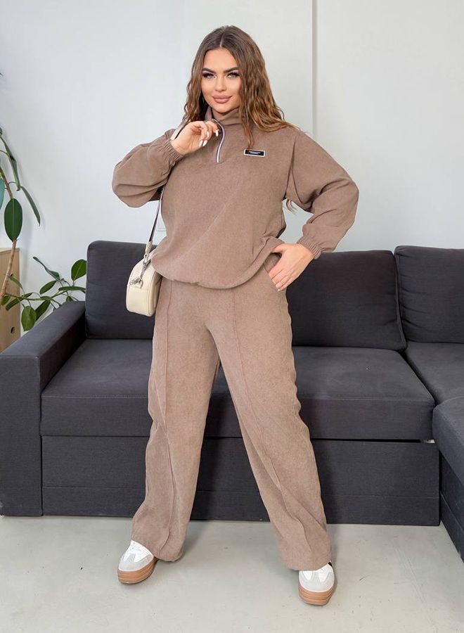 Стильне та зручне поєднання, на всі випадки, зараз просто must have! Кофтина зі спущеними рукавами, низ регулюється куліскою. Брюки універсальні, рівного крою з відстроченими стрілами, мають дві кишені, еластичний пояс теж регулюються куліскою.
